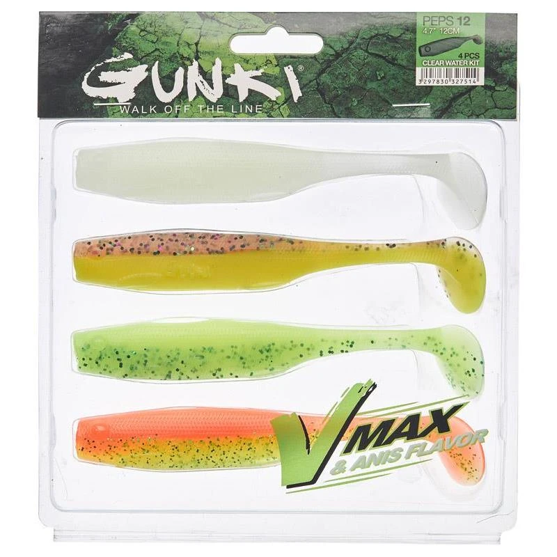 • le « Clear Water Kit 2” propose quatre couleurs (Caramel, Gremille, Dirty Chart, Ghost Fry) qui se révèleront plus efficaces dans des eaux claires (eau peu chargée, ciel dégagé et ensoleillé).